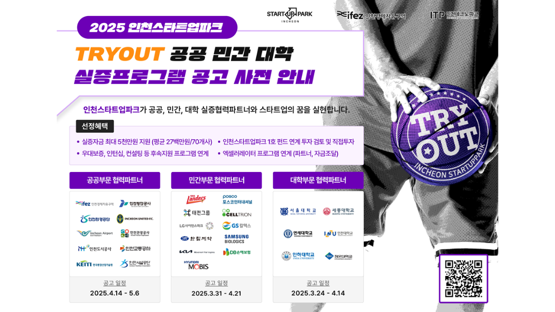 [인천스타트업파크]🚀2025 인천스타트업파크 TRYOUT! 실증 프로그램 모집 사전 안내